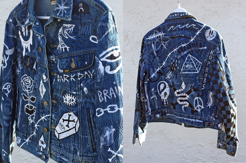 Hmmm, I guess I get my inspiration from 80’s and 90’s music, movies and pop culture; all the rad logos and typography that come from that era really get me going. But with DIY and scribbling on denim you can get ideas from absolutely anything, just let your brain run wild I say!